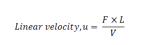 The linear flow rate can be calculated with the following equation and supporting data, which is available on the Product Sheet, or in the table below.